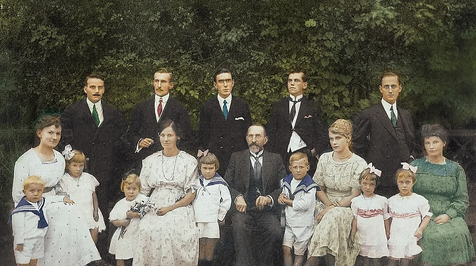 Familia Essenfelder. Da esquerda para a direita, vemos Carlos Essenfelder Traub, com os filhos Serafina e Ernesto, ao lado de Adolfo Bruchez Traub; Alayde Traub Essenfelder, com as filhas Daysi e Nelly e Floriano Helmuth Essenfelder atrás; Florian Essenfelder ao centro, tendo atrás Ernesto Essenfelder e Carlos Essenfelder; Margarida Essenfelder com Adolfo Essenfelder á sua direita; Alvina Asmée Essenfelder com suas filhas Edith e Cecília e Fredederico Essenfelder atrás.